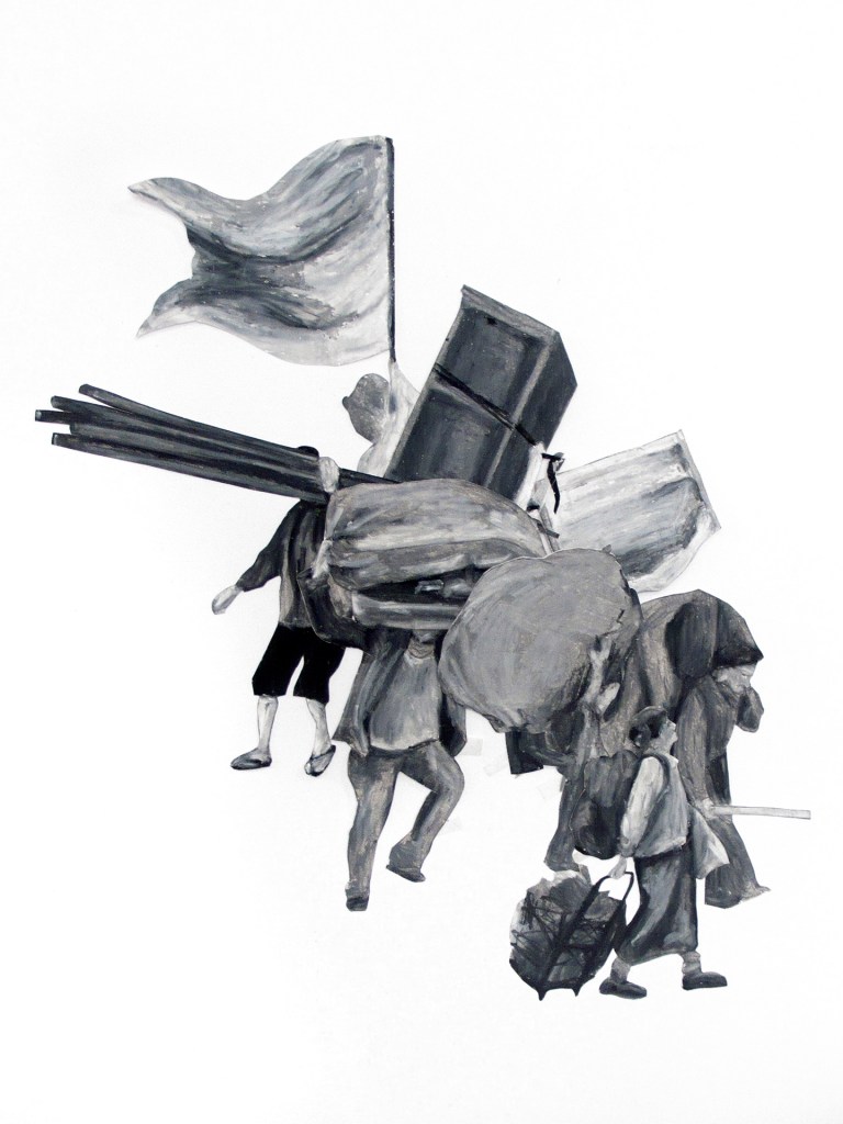 série de 7 colagens de desenhos