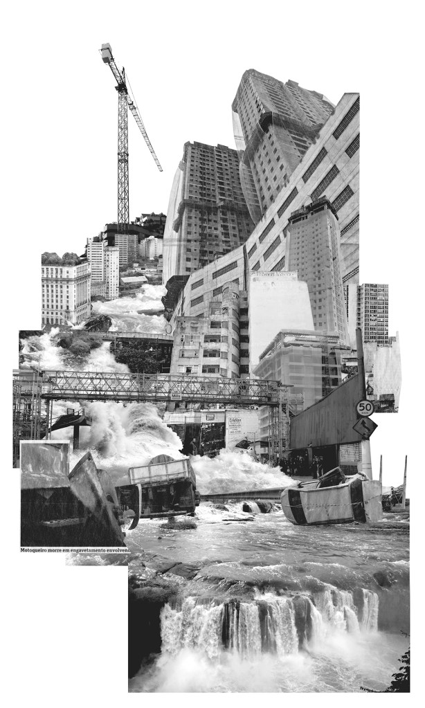 As fotomontagens são a combinatória de fragmentos deste material. Nelas, a cidade é apresentada sob diversos ângulos, como se fosse uma explosão de eventos simultâneos.