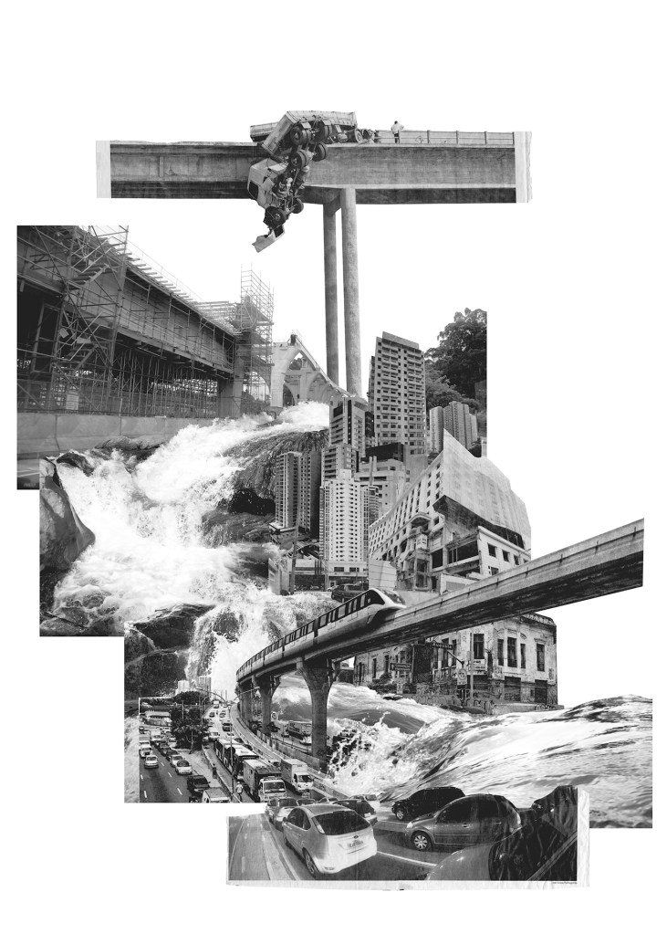 REFUGOS é o título de uma série de 13 fotomontagens, elaboradas a partir de uma ampla pesquisa sobre imagens de cidades. Este conjunto compreende fotos capturadas por mim nos meus percursos