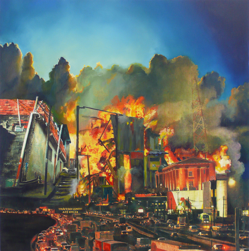 pintura à óleo sobre impressão em tela